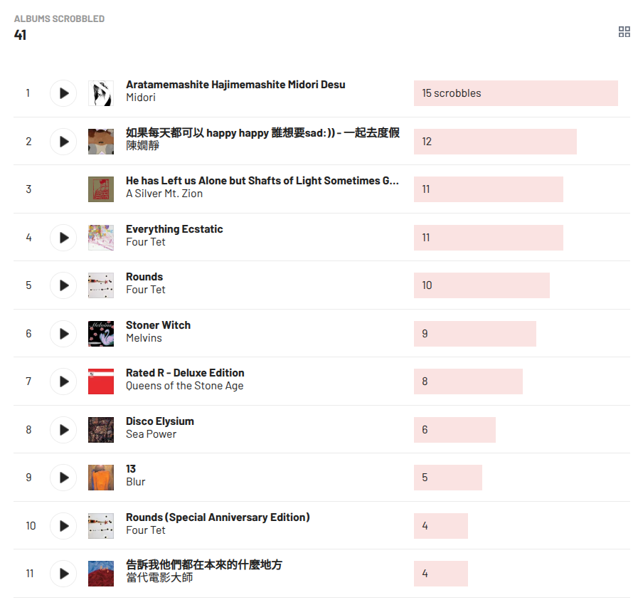 這禮拜大部分聽的都是舊專輯,也沒有挖掘到想讓我大書特書的新專輯,就不寫心得了。
