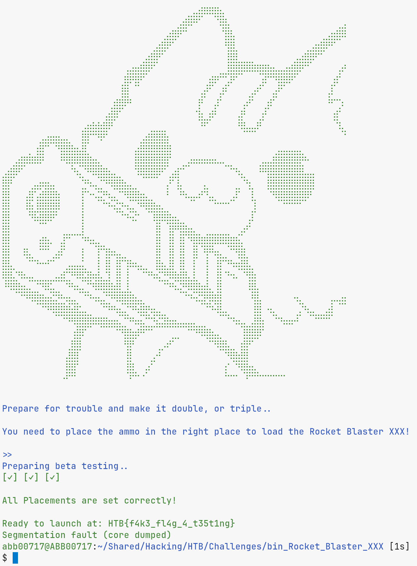 解 Pwn 還能有可愛的 ASCII Art … 基本上就是利用 Buffer Overflow 完成 ROP Gadget 鏈攻擊。不過作者還提到一個問題: